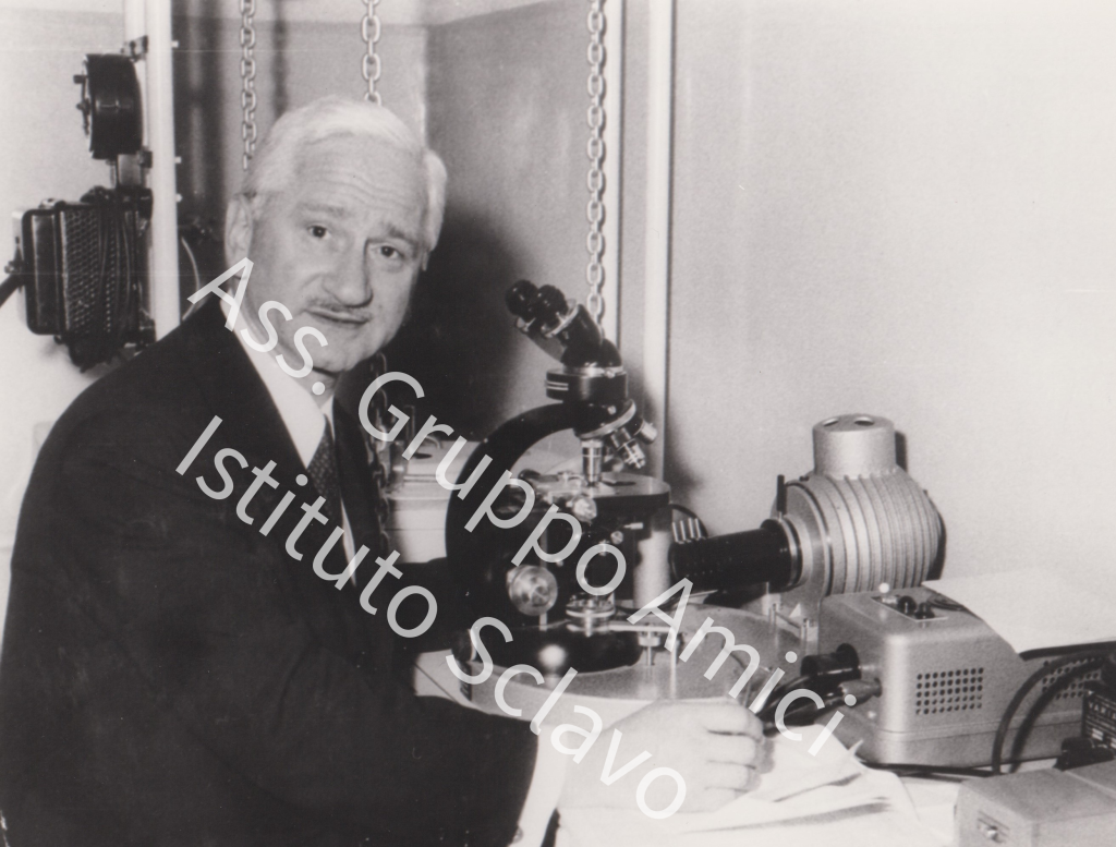 Gli anni Cinquanta furono caratterizzati nella lotta contro la poliomielite dall’affermarsi di due diversi vaccini, quello inattivato di Jonas Salk (IPV) e quello da virus vivo attenuato di Albert Sabin. Nella disputa che interessò gran parte del mondo scientifico e della politica, l’Istituto Sclavo scelse di stare dalla parte di Sabin, nonostante le tante voci contrarie. Alla fine degli anni Cinquanta l’Istituto Sclavo ricevette la prima visita di Albert Sabin che, verificati il livello tecnico raggiunto e i costanti aggiornamenti scientifici, affidò all’Istituto Sclavo la produzione del suo vaccino contro la poliomielite.